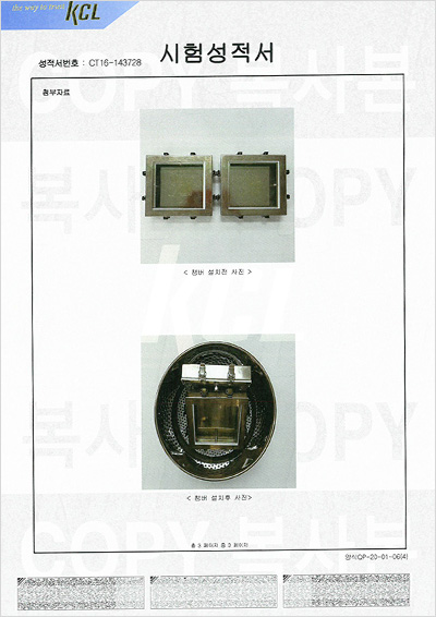 | 시험항목 | 단위 | 시험방법 | 시험결과 | 비고 |